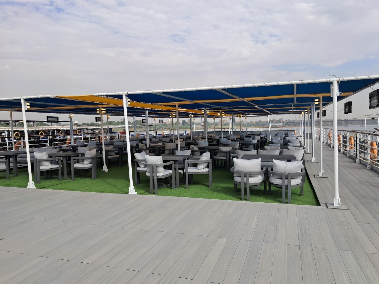 오전 5시에 매의 신 호루스에게 바쳐진 에드푸 신전을 방문하며 하루를 시작합니다. 에드푸 신전은 이집트에서 가장 잘 보존된 신전 중 하나로, 프톨레마이오스 시대의 건축과 신화에 대해 배울 수 있는 특별한 장소입니다. 신전 투어를 마친 후 크루즈로 돌아와 오전 5시 30분부터 7시까지 선상에서 아침 식사를 즐기며 항해를 이어갑니다. 이 시간 동안 나일강의 아름다운 풍경을 감상하며 여유롭게 하루를 시작할 수 있습니다.크루즈는 나일강을 따라 룩소르로 향하며 강둑과 마을의 멋진 경치를 지나갑니다. 오후 12시에는 선상에서 점심 식사가 제공되며, 손님들은 강의 전망을 즐기며 다양한 요리를 맛볼 수 있습니다. 점심 후에는 데크에서 휴식을 취하며 주변 풍경과 부드러운 강바람을 즐기기에 좋은 시간을 가질 수 있습니다.오후 3시에는 애프터눈 티 시간이 있어 차와 가벼운 스낵 또는 페이스트리를 즐기며 휴식을 취할 수 있습니다. 이 시간은 사진을 찍거나 항해 중의 평화로운 분위기를 느끼기에 적합합니다. 오후 5시에는 크루즈가 룩소르에 도착하며, 손님들은 나일강을 따라 자리한 웅장한 신전과 고대 기념물을 감상할 수 있습니다. 룩소르는 고대 도시 테베의 중심지로, 세계 최고의 야외 박물관 중 하나로 손꼽힙니다. 오후 7시부터 9시까지는 선상 레스토랑에서 저녁 식사를 즐깁니다. 전통 이집트 요리와 세계 각국의 요리를 맛보며 휴식과 사교 시간을 가질 수 있습니다. 저녁 식사 후에는 나일강 위에서 선상 엔터테인먼트와 음악, 춤, 사교 활동이 포함된 활기찬 나이트 파티가 이어집니다. 손님들은 즐거운 저녁 시간을 보내며 기억에 남는 경험을 쌓을 수 있습니다. 밤에는 크루즈에서 하룻밤을 머물며 선실에서 휴식을 취하고, 잔잔한 나일강과 평화로운 밤의 분위기를 만끽하며 하루를 마무리합니다.