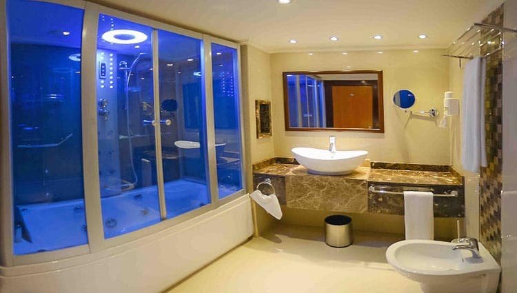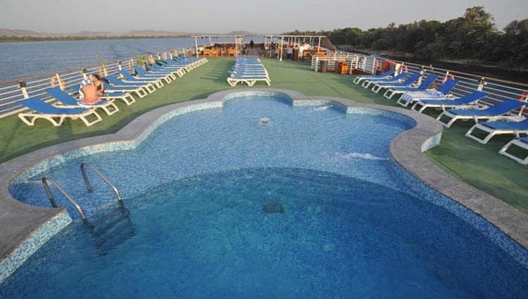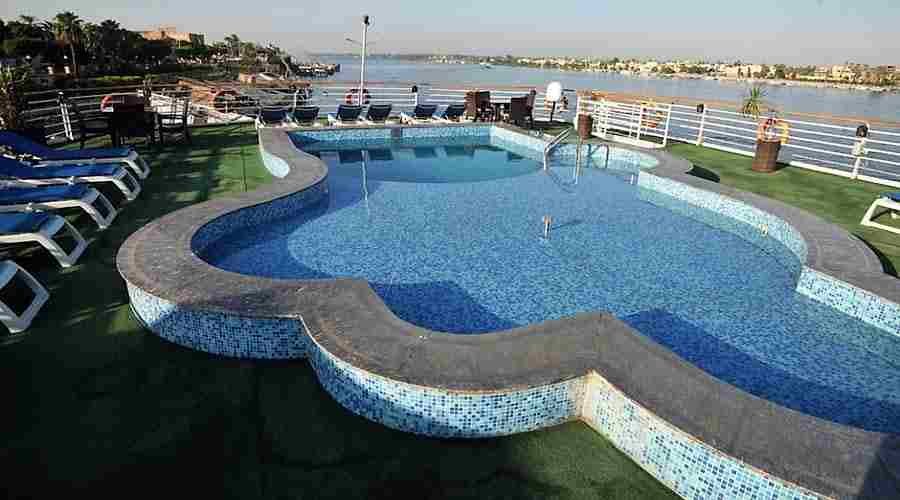 이 4일 디럭스 나일강 크루즈 블루 섀도우 I는 수영장, 헬스장, 아로마테라피 사우나와 같은 고급 시설을 제공하며, 개인 객실 또는 선데크에서 탁 트인 전망을 감상하며 아스완에서 룩소르까지 편안함과 문화 탐험을 결합합니다.