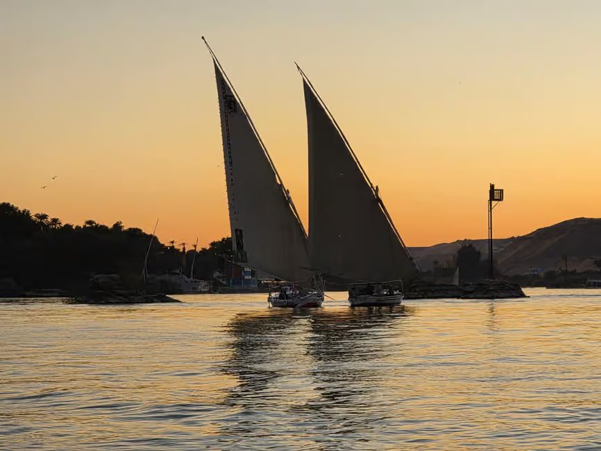고요한 자연과 전통적인 이집트의 감성을 동시에 느낄 수 있는 특별한 일정입니다. 전통 목조 범선인 펠루카를 타고 약 1시간 30분 동안 나일강 위를 여유롭게 항해하며, 황금빛으로 물드는 아스완의 일몰을 감상합니다. 바람을 이용해 천천히 이동하는 펠루카 특유의 평온한 분위기 속에서 도시의 소음에서 벗어나 진정한 휴식을 취할 수 있습니다