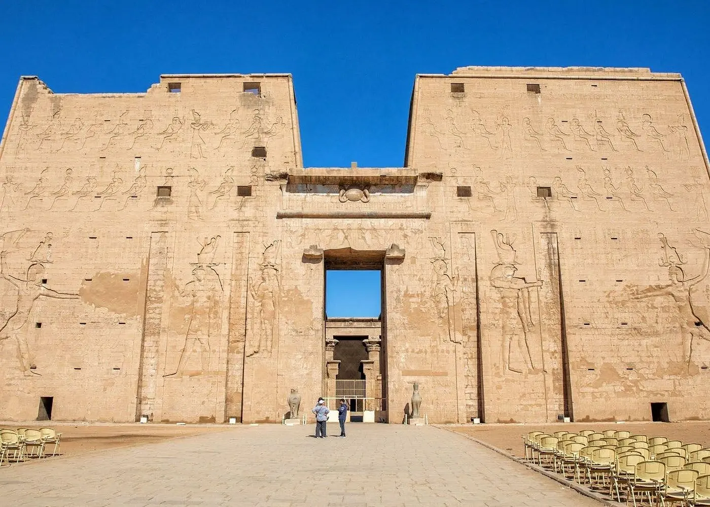에드푸 사원은 매의 신 호루스에게 바쳐진 이집트에서 가장 완벽하고 잘 보존된 사원 중 하나입니다. 사원 내부의 조각품은 호루스와 세트 사이의 갈등에 대한 유명한 전설을 포함하여 고대 이집트의 일부 정치적 사건과 종교적 신념을 묘사합니다. 가이드 투어를 하면서 사원의 세부 사항과 고대 종교 의식에 대해 배우게 됩니다. 아스완으로 복귀 에드푸 신전을 둘러본 후 아스완의 호텔로 편안하게 복귀하세요.